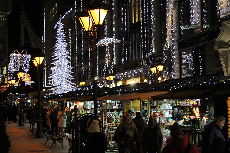 No quedó más remedio que salir o perderíamos toda la tarde. Ya era completamente de noche pero igualmente optamos por subir a la colina de Buda para ver la ciudad iluminada desde lo alto y fue todo un acierto. Eran las 17 h. cuando estábamos cruzando el Puente de las Cadenas y la ciudad estaba preciosa, tanto que ni nos dimos cuenta que las temperaturas iban bajando. Ver el Danubio desde el centro del puente también fue una pasada.