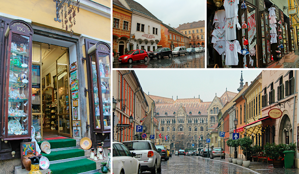 Continuamos paseándonos por esta parte de la colina que nada tenía que ver con la agitada Pest. Solo habías casitas de colores que parecen de cuento. Aquí las calles eran silenciosas y tranquilas, poco tráfico y mucho encanto. Las gotas que chispeaban empezaron a convertirse en lluvia y como andábamos buscando un lugar para almorzar algo optamos por refugiarnos en una cafetería haciendo tiempo para que la lluvia calmase. Fue un descanso muy agradable en una coqueta terracita cubierta donde veíamos llover al calor de la estufa que teníamos al lado.