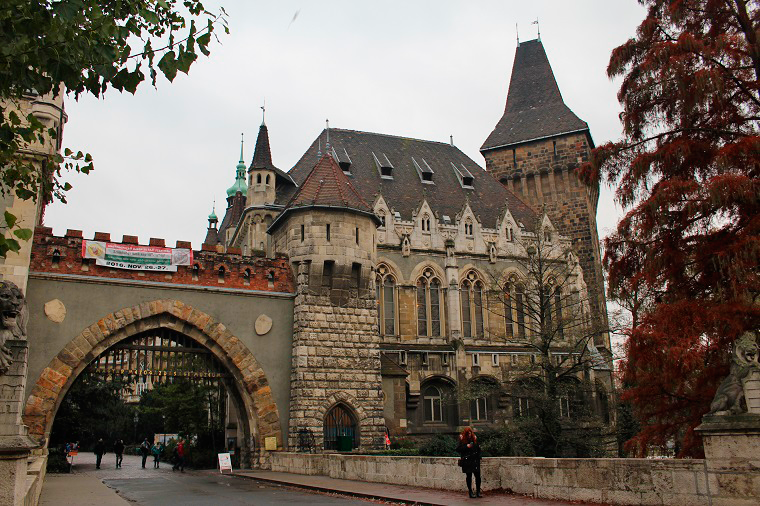 Entre el día que hacía, los árboles sin hojas y el suelo mojado, el City Park estaba más triste que nunca. Además si combinas el frío que hacía con la humedad que había en el parque, allí no se podía estar. Dimos una vuelta rápida por el balneario y nos fuimos en busca de un castillo que teníamos fichado como muy interesante: Vajdahunyad Vára. Un castillo construido a finales del siglo XIX como reconstrucción de otras antiguas construcciones húngaras. Tampoco lo vimos por dentro ya que había que pagar...