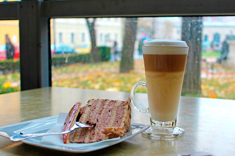 Dobos cake y café con leche