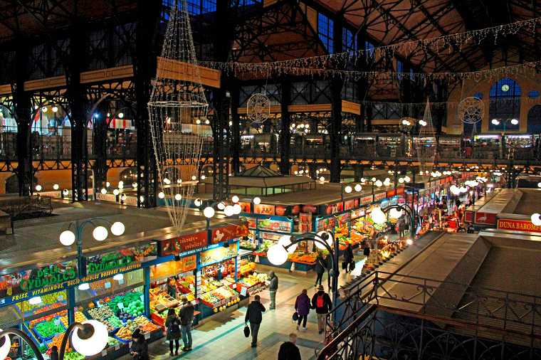 Tomamos el metro y aun quedaba algo de luz, pero nada más bajar en la parada del Mercado Central ya era de noche. No sabíamos que no quedaba poco para que cerrasen, nos dimos una vuelta por la planta de abajo que era donde vendían la fruta, la verdura y todo tipo de productos húngaros. La planta de arriba estaba llena de pequeños locales donde poder coger algo típico de comida rápida húngara y comer allí mismo. Nos costó decidirnos entre tanta variedad aunque teníamos claro que no queríamos nada que llevase repollo agrio; salimos escarmentados el primer día. La comida rápida estrella de Hungría es el lángos, una especie de pizza hecha de masa frita a la que se le puede echar cualquier ingrediente a nuestro gusto, el mio era de queso, salsa de comino, cebolla y beicon ahumado que sabía a brasas recién cogidas de la hoguera, pero estaba muy rico. También había infinidad de puestos de souvenirs y de artesanía que no nos dio tiempo a ver porque ya los estaban cerrando cuando terminamos de comer. Menos mal que me dio tiempo a comprarme mi taza de capitales! (uno de los muchos souvenirs que colecciono además de imanes, llaveros, camisetas... en fin)