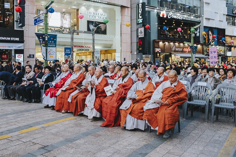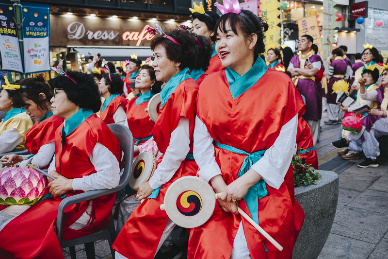 Y luego cruzamos la calle y nos fuimos de compras, arrasamos (literalmente) en las tiendas de cremas (las cremas coreanas por lo visto lo tienen todo, son buenas, bonitas y con precios razonables. A nosotros nos recomendaron Innis Free, Missha y The Face Shop) y compramos chorradas para el móvil a mansalva y hasta coincidimos con una especie de festival budista que creo que conmemoraba el nacimiento de Buda.