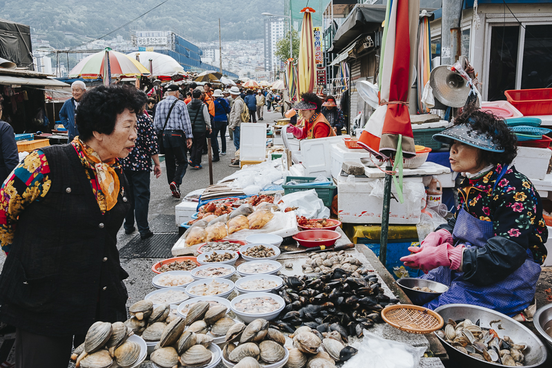 Después de visitar un templo budista, nos fuimos directamente al mercado de pescado, que para mí fue uno de los (muchos) momentazos del viaje. No sé como sería el de Tokyo (por desgracia nos faltó tiempo), pero el de Busan es indescriptible.