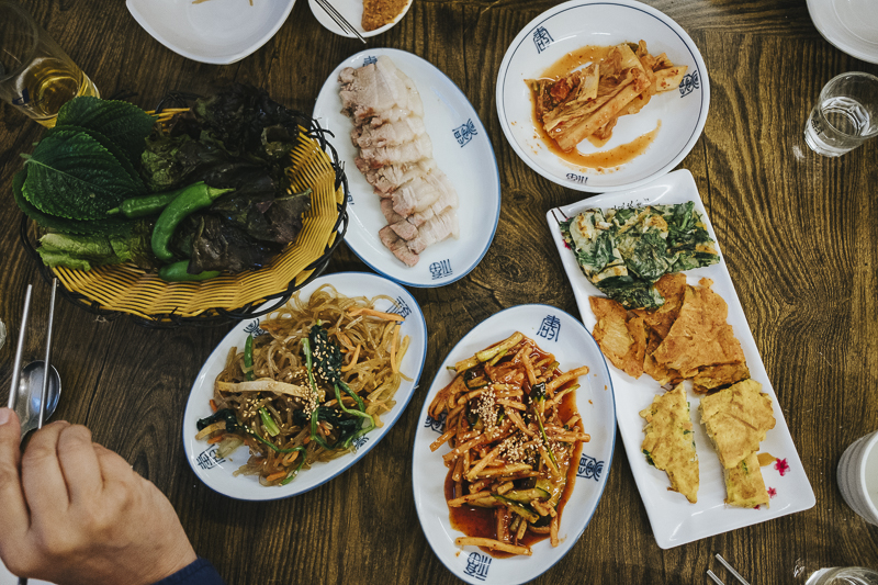 Como no podía ser de otra manera, aprovechamos para hacer una incursión en la gastronomía coreana, que sin ser la japonesa, también tiene sus delicias. Yo tenía muchas ganas de comer kimchi in situ (si no lo pruebo, reviento) y la experiencia fue inenarrable.