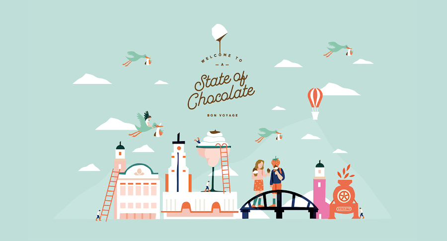 Bajo el concepto Welcome to a State of Chocolate. Bon Voyage!, desarrollaron una nueva filosofía para la empresa de chocolate, que nos presenta el sabor como un viaje dulce de la imaginación.