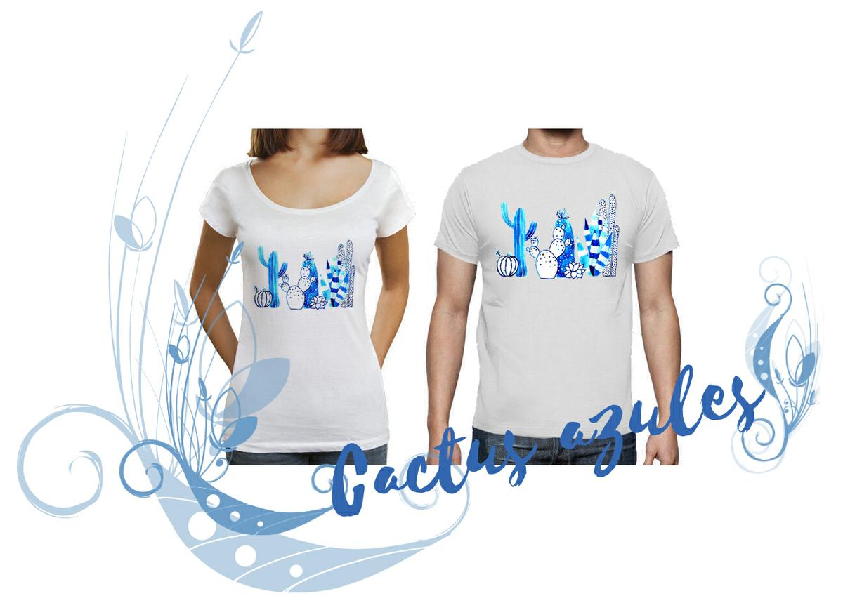 Cactus azules, diferentes tipos de plantas… un dibujo que es chulo, ¿Por qué no llevarlo en una camiseta?