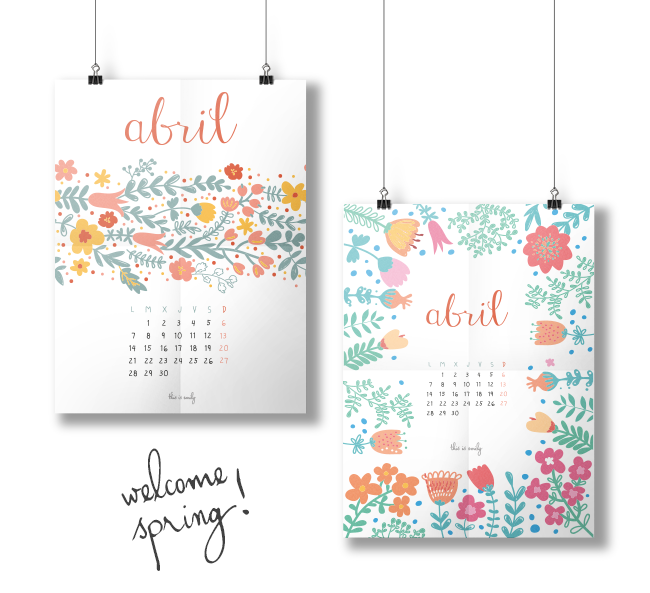 Así que aquí tenéis no uno, si no dos ¡dos! calendarios primaverales y coloridos para que elijáis el que más os guste. Como siempre, son en formato A4 para que podáis imprimirlo en casa sin problemas :)
