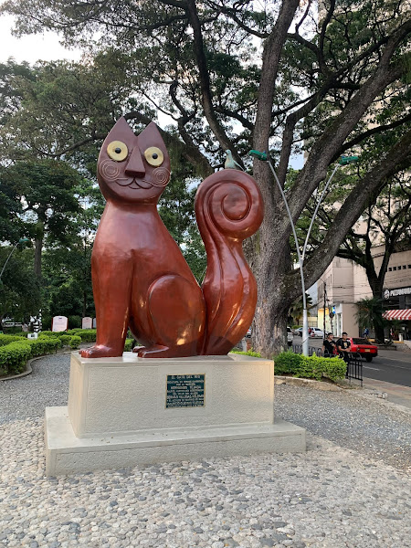 El gato del rio...¡Este parque es divino! también se encuentra cercano al malecón, allí se encuentra el gato del rio del escultor Hernando Tejada, y un circuito en donde se puede ver la escultura de gatos interpretado por distintos artistas.