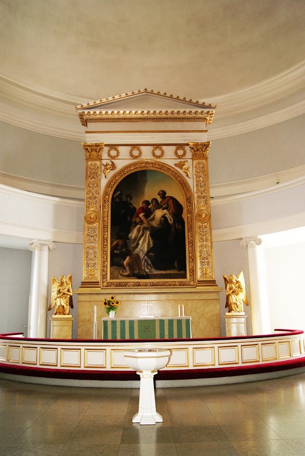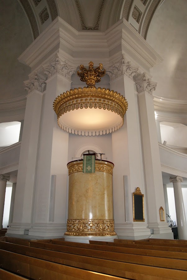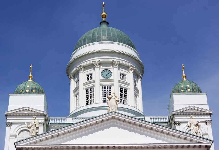 Es un sello distintivo del paisaje de la ciudad de Helsinki, la iglesia que se erige con su alto domo verde rodeado de cuatro domos más pequeños, es de estilo neoclásico y fue construida entre 1830 y 1852. Fue diseñada por Carl Engel, para completar el conjunto urbanístico de la Plaza del Senado que Engel había diagramado y a la cual había rodeado de varios edificios de su autoría. El edificio posee una planta en forma de cruz griega (es decir un hall central rodeado por cuatro brazos de igual longitud) y es simétrica en las cuatro direcciones, cada una de ellas con su columnata y frontón.