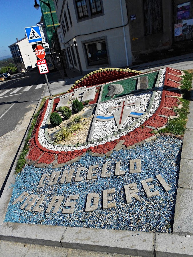 Me ha sorprendido la entrada de Palas de Rei, un gran merendero con unas piscinas, un campamento, un campo de futbol..., te dan la bienvenida al llegar al pueblo. He tenido que continuar un buen rato hasta llegar al centro.