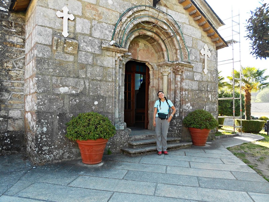 la pobre tiene los pies llenos de ampollas y está preocupada, quiere llegar a Santiago el martes a las 12:00 para asistir a la misa del peregrino y no sabe si lo podrá conseguir (seguro que sí).