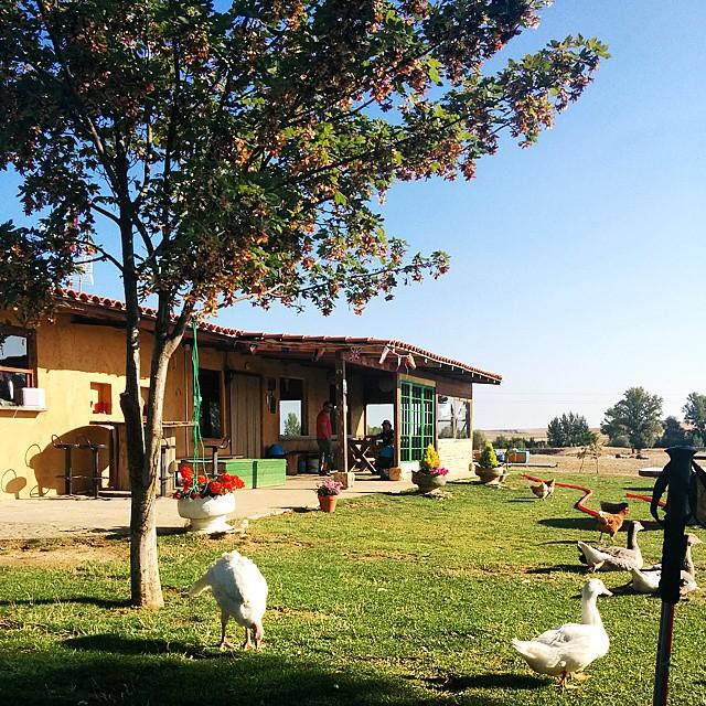La senda alternativa se une al camino mayoritario en la población de Villarmentero de Campos, dónde paramos a reponer fuerzas en un paradisíaco lugar. Allí, un espacio alfombrado de cesped, con mesas para el reposo y acompañado de ocas y cisnes (quién las puso allí sabía algo de su simbología).