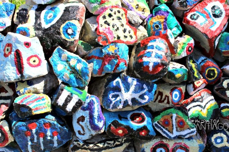Poco antes de llegar, en Belmonte de Pría, nos encontramos con una grata y colorida sorpresa: un muro de piedras una a una cuidosamente decoradas bordeaban el Camino de Santiago, dando la bienvenida al pequeño espacio que Víctor había creado para el deleite del peregrino.
