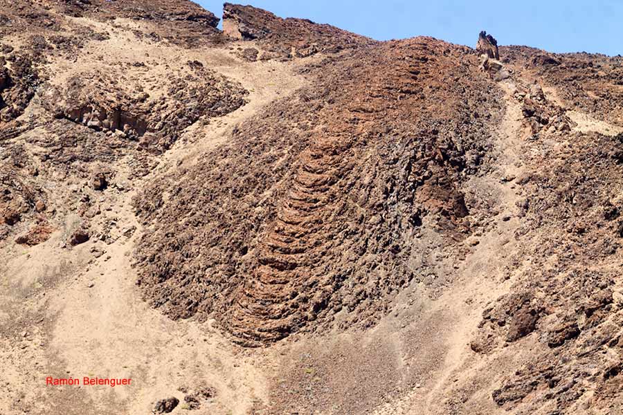 Las lavas procedentes de las distintas erupciones han rellenado extensas superficies de la antigua caldera con materiales volcánicos de todo tipo, con lo que se ha dado forma a un espectacular paisaje de aspecto caótico. Las coladas de lava forman a veces campos de escoria llamados malpaíses, otras caen ladera abajo o asoman sobre volcanes más antiguos formando lenguas, y otras se disgregan en enormes bloques, como en el caso del Valle de las Piedras Arrancadas