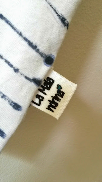 Las rayas las pinté con un pincel de punta muy fina y pintura textil muy diluida para que sean algo irregulares y tengan este efecto "acuarelado" muy handmade