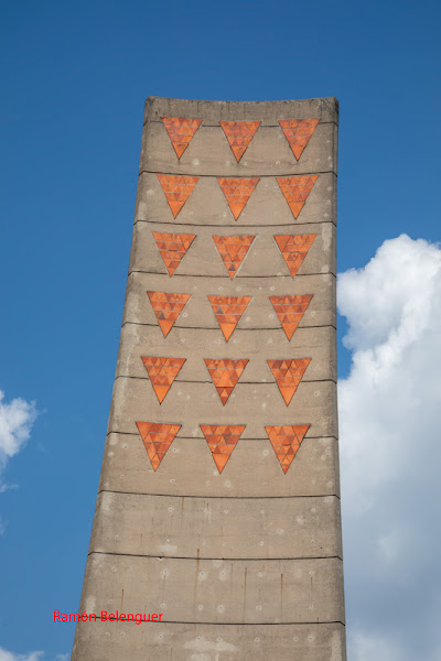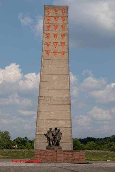 Obelisco erigido en 1961 en memoria de la liberación del campo. Tiene unos 40 metros de altura.