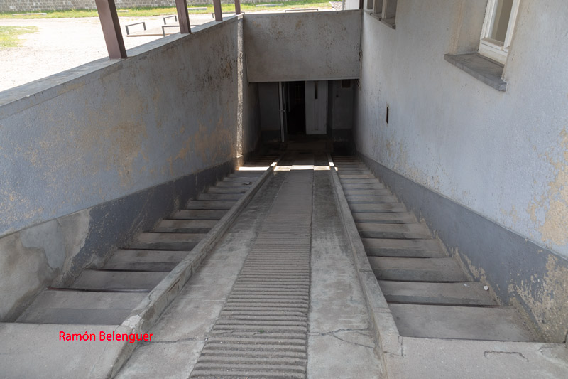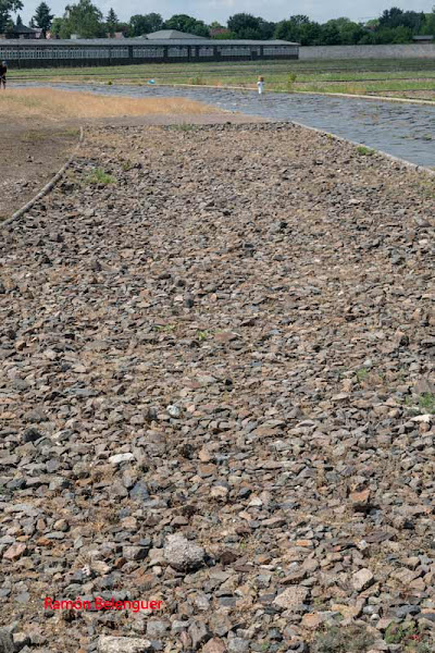 Pista para tantear las botas. Los prisioneros asignados a este comando de castigo tenían que marchar continuamente por esta pista. Construida en 1940, servía para tantear el material de las suelas de las botas fabricadas por la industria de piel alemana