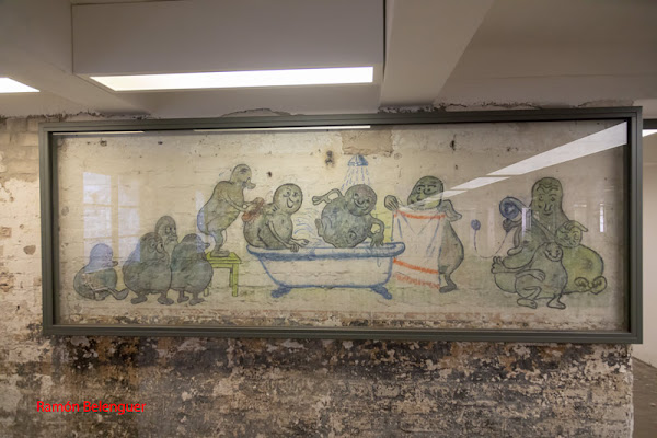Cocina: la exposición en la antigua cocina muestra acontecimientos centrales de la historia del campo. Ilustra sus cambios y continuidades, sus diferentes etapas. En el sótano, el antiguo cuarto de pelar patatas,se pueden ver pinturas murales que realizaban los prisioneros.