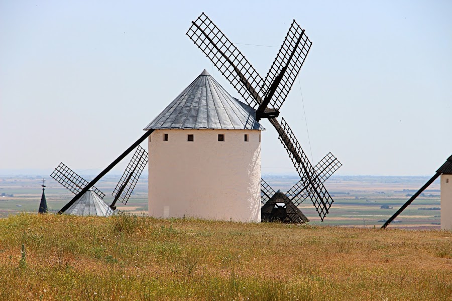 El escenario lo tenemos a la vista: la sierra de los Molinos y el Cerro de la Paz donde recortan sus blancas figuras hasta diez molinos de viento, la mayor obra de ingeniería del siglo XVI.