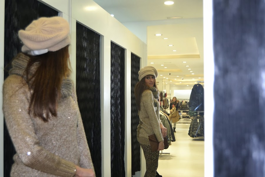 A la hora de combinar estos leggings (tarea nada sencilla, por cierto, porque hay que evitar que los tonos no choquen entre sí para que el resultado no sea desastroso), he optado por un jersey de punto grueso brillante, muy femenino, para no correr excesivos riesgos,