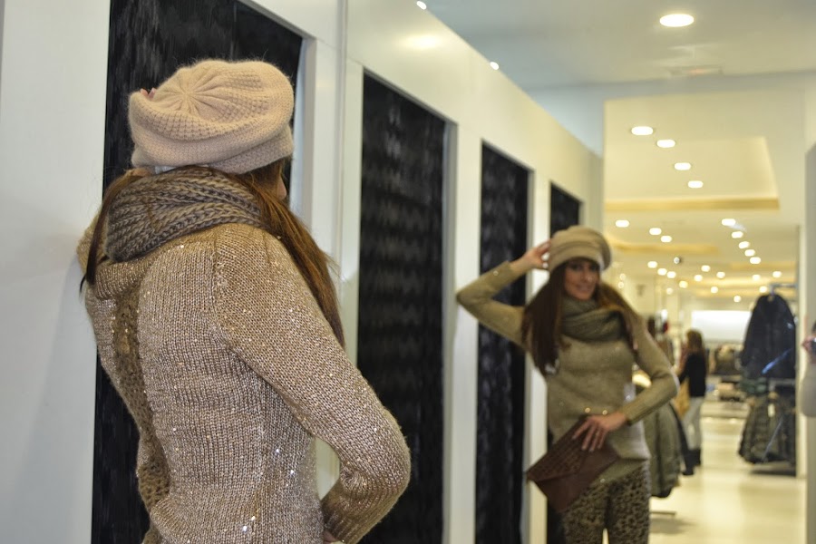 Por supuesto, para animar el look invernal y al mismo tiempo protegerme del frío que aquí en Asturias nos rodea por todas partes, he cubierto muy bien toda la zona del cuello manteniéndolo caliente incluyendo un cuello bufanda cerrado, en suave lana, realizado a tricot, al que le he dado dos vueltas y un gorro tipo boina, también de lana.