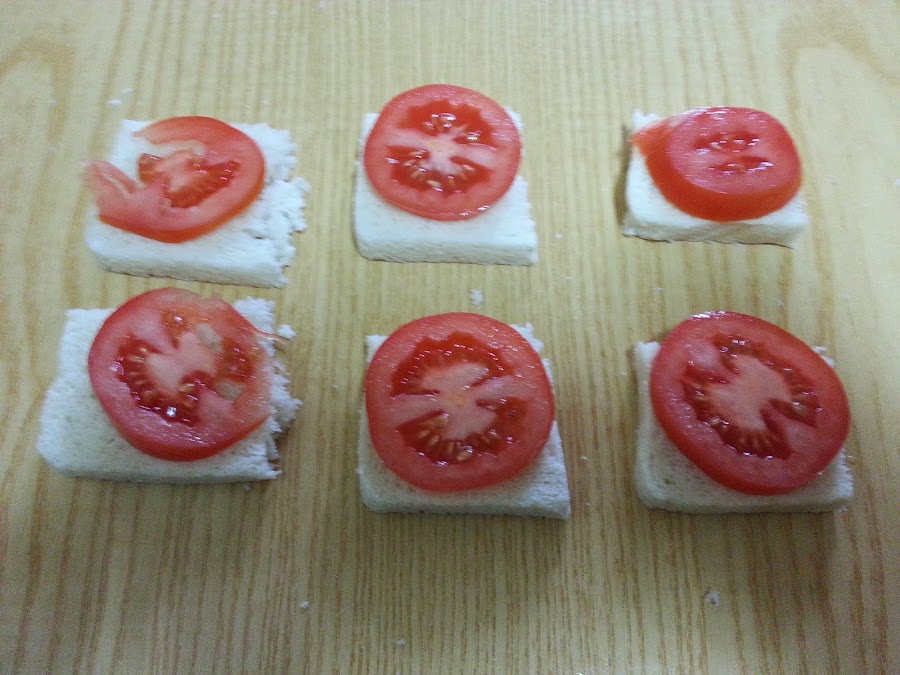 Los hemos hecho sobre pan de molde sin corteza, cortando cada rebanada en cuatro partes. Tú eliges si las quieres cuadradas o triangulares (cortando en diagonales). También puedes hacerlas sobre tostadas pequeñas.