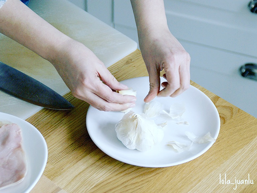 Comenzamos haciendo el relleno de los canelones, para ello, pelamos y picamos los ajos.