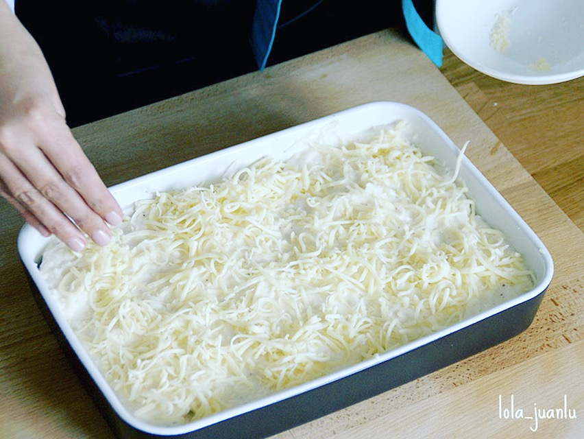 Espolvoreamos el queso y horneamos durante 15 minutos.