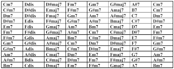 Acordes posibles Am: m7 - m9 - m11 - m11b13