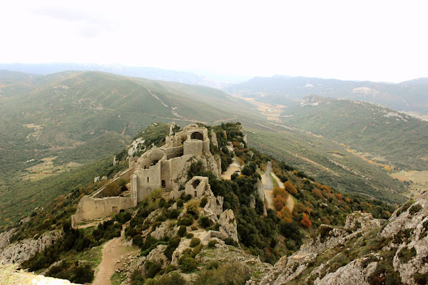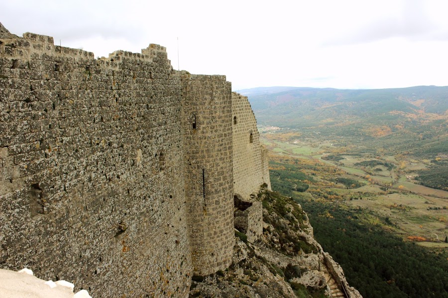 Nuestra siguiente parada fue el Castillo de Quéribus, que es un castillo situado sobre un espolón rocoso. Para visitar el castillo, tienes que pagar una entrada y de ahí, subir una cuesta pronunciada. El castillo esta bastante destruido, pero hay algunas estancias que están perfectamente conservadas. Eso si, desde allí se tienen unas vistas increíbles.