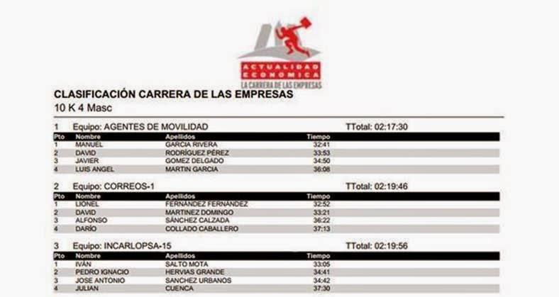 Clasificaciones Carrera de las Empresas 2014