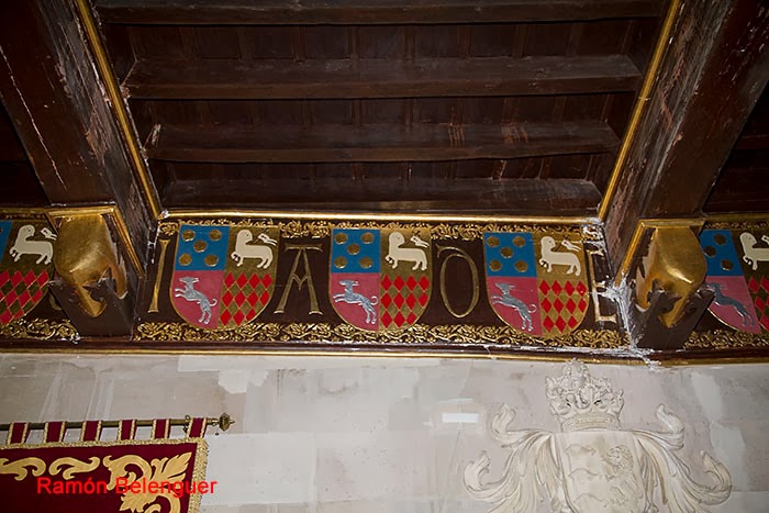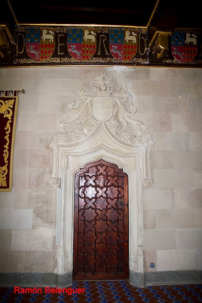 Esta Sala dispone de tres puertas, las cuales están decoradas con distintos blasones o escudos (blasón de los Escrivá de Romaní, de los Fernandez de Córdoba, blasón de los apellidos Dusay y Fivaller.