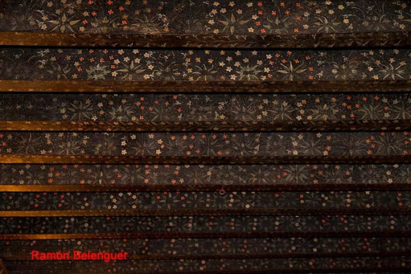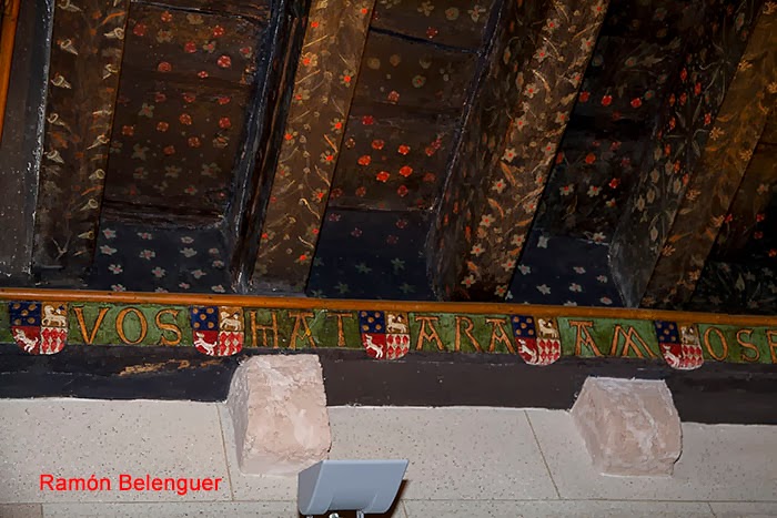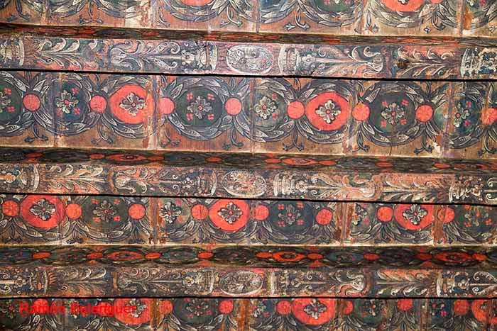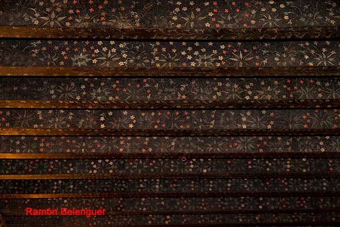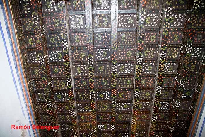 Otra de las habitaciones dispone un artesonado con decoración floral del siglo XVI.