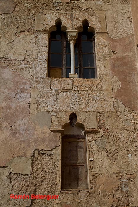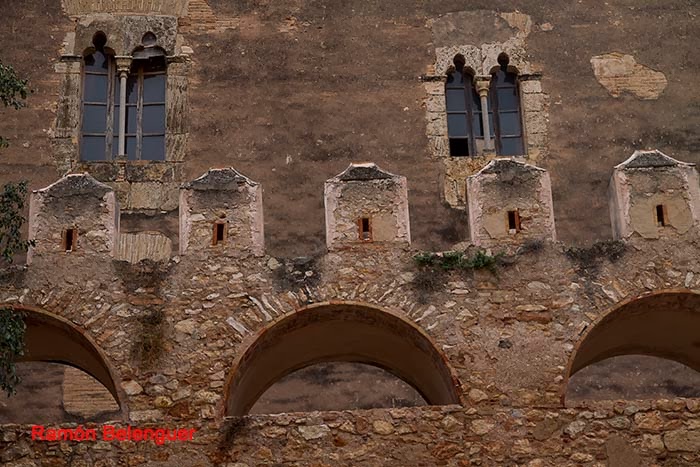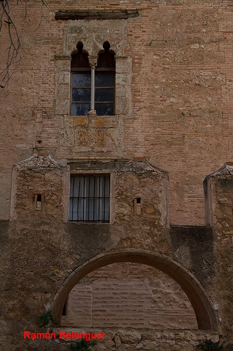 Ronda del castillo y foso, donde se pueden observar las ventanas góticas que adornan su fachada,