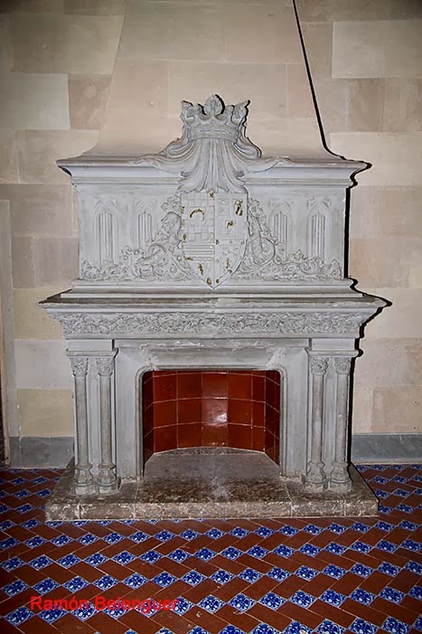 Chimenea de características renacentistas con un escudo que es un compedio de todos los demas.