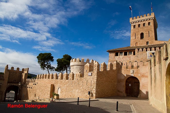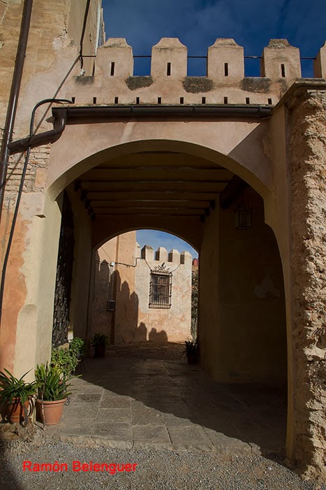 La barbacana es de gran solidez y está almenada con saeteras, alzandose en sus vertices torres defensivas
