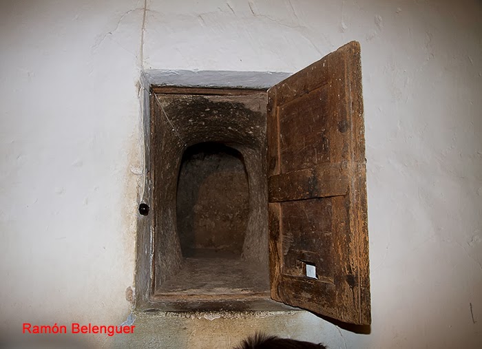 a la izquierda se ve una pequela ventana correspondiente a un antiguo aljibe árabe que fue posteriormente cegada y convertido en una celda de castigo, para los criados.
