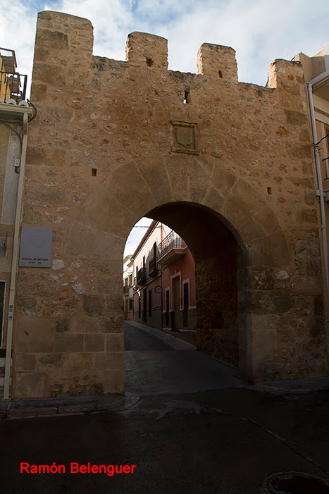La entrada al recinto amurallado del castillo, se realiza por una puerta con un arco de medio punto, y por el mismo lugar donde antaño se encontraba el puente levadizo.