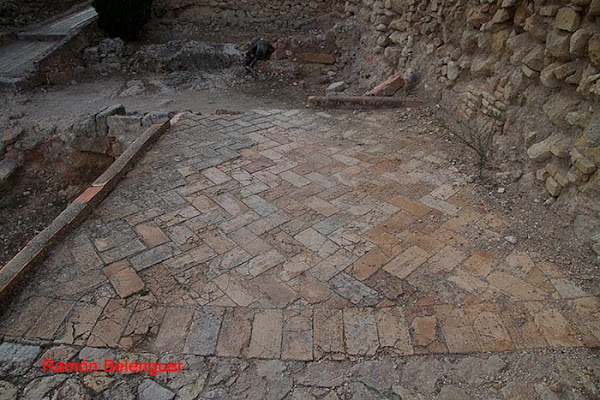 Primer patio de la celoquia. La celoquía citada en 1411 y 1545 era la parte más alta de los castillos musulmanes, y ésta tenía en principio dos patios, alrededor de los cuales estaban las diversas salas y cámaras: las salas moriscas y las salas del duque de Calabria. Este primer patio tenía el pavimento antiguo en forma de espiga, propio de las obras romanas (opus spicatum).