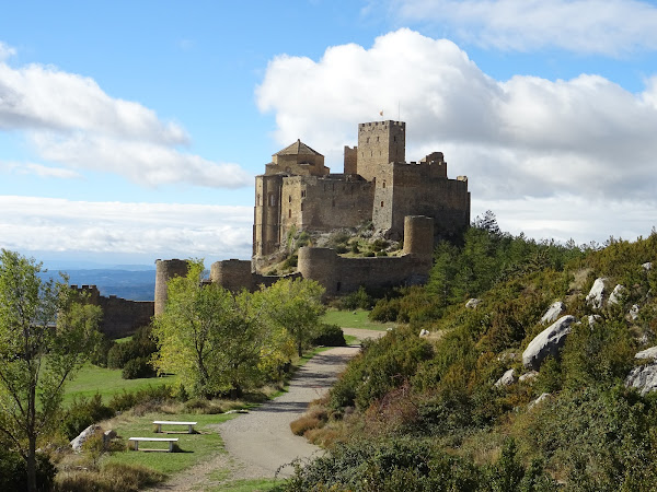 El Castillo de Loarre se asienta sobre una montaña de roca caliza, rodeado de una muralla con torreones. Es una construcción civil y militar del s. XI. Hay ciertas partes que están algo deterioradas, pero en general su estado de conservación es bastante bueno. Según vas llegando la vista de él es impresionante. Como curiosidad, la cúpula de la iglesia del castillo, poco habitual en las construcciones románicas.