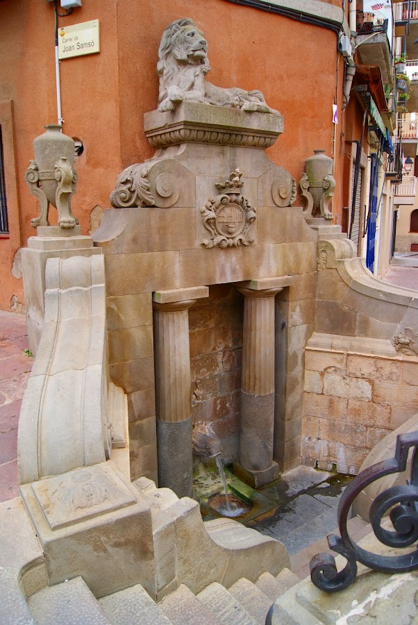 A pesar de ser emblema actual de la ciudad, el diseño de la fuente que vemos ahora no es el original de 1581, ni siquiera el de la renovación de 1822, sino una fuente-monumento más contemporánea que data de 1927. Fue este último boceto el que añadió el fabuloso y majestuoso león hecho con piedra de Montjuic, hoy símbolo de la ciudad, que vigila y observa como todo habitante de la ciudad venera la calidad de sus aguas, ya sea para regar, dar de beber al ganado, cocinar exquisitas viandas o tan sólo beberla como parte de las indicaciones terapéuticas de los médicos.
