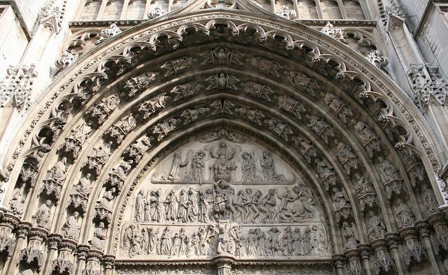 Si te detienes en la pequeña plaza antes de la entrada podrás admirar los altos arcos góticos. Así como las estatuas intrincadamente talladas dentro de la fachada. Al pie de la aguja sur, verás un monumento al arquitecto de la iglesia, Jean Appelmans.