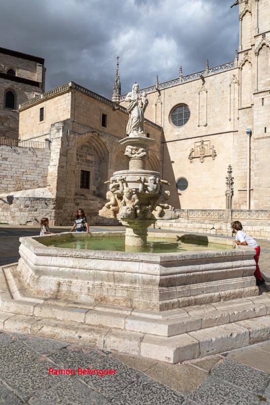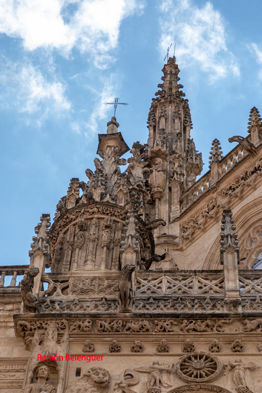 PUERTA DEL SARMENTAL (S. XIII).Se abre en el brazo meridional del transepto y asomada a la Plaza del Rey San Fernando, hecha de piedra, desde la que se accede salvando una pronunciada escalinata, fue construida entre 1230 y 1240, es la primera portada que se levanta en la catedral de Burgos. Se trata de uno de los mejores conjuntos escultóricos del clasicismo gótico del siglo XIII en España. Está dedicada al tema arcaizante de Cristo en Majestad, aunque empleando una plástica innovadora.