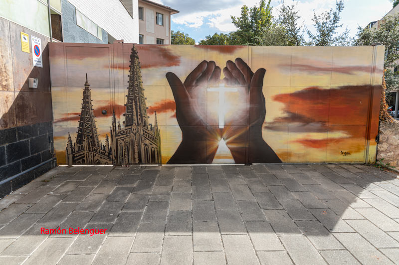 Al lado del mostrador donde se venden las entradas aparece un gran boceto, son solo líneas negras, de un cristo