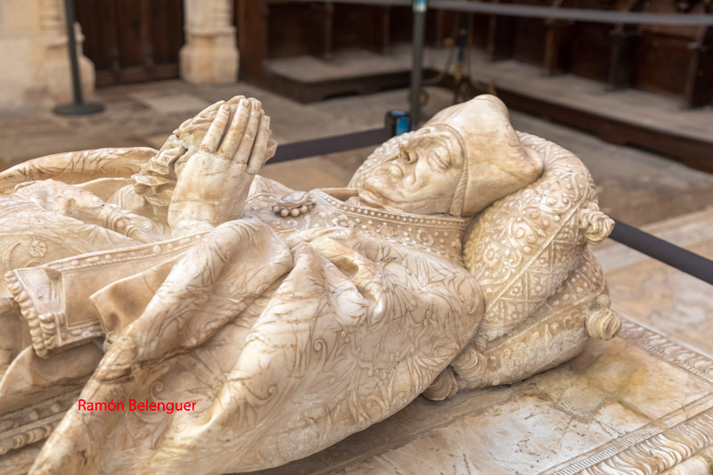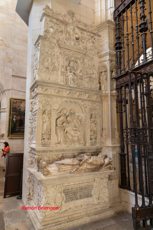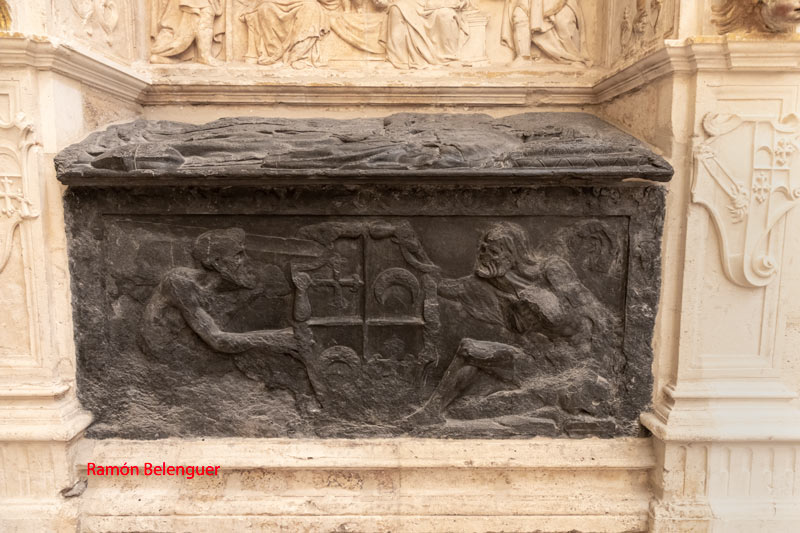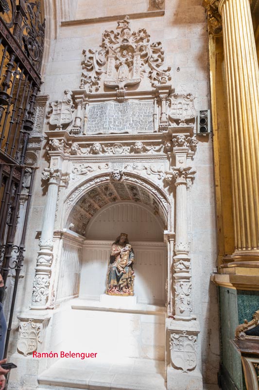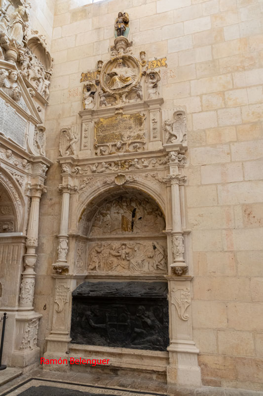 En el centro de la capilla se halla el sepulcro de su fundador, tallado en fino alabastro por Diego de Siloé en 1519. Destaca la estatua yacente por lo delicado de su talla y realismo así como el pedestal, adornado con bajorrelieves de las virtudes cardinales y teologales y escudos del fundador. Está inspirado y es casi una copia del pedestal del Papa Sixto IV, que se halla en los museos vaticanos.