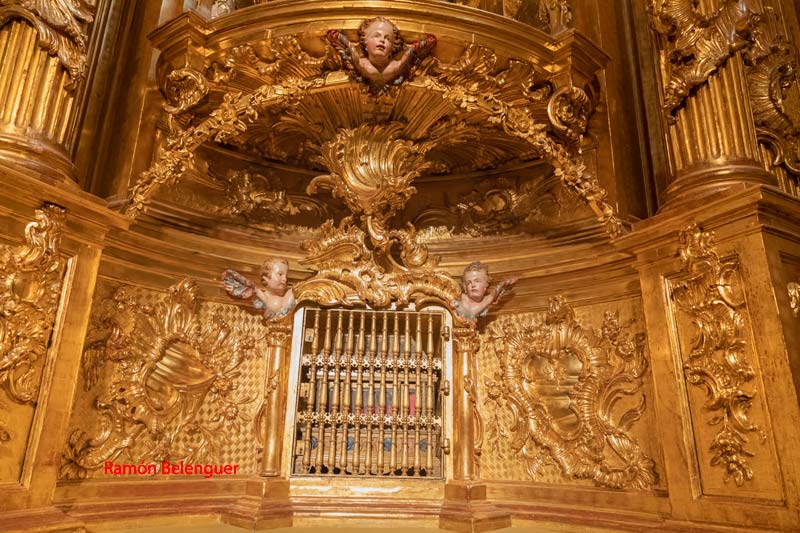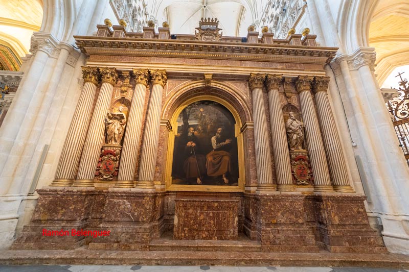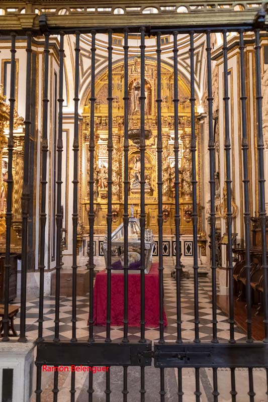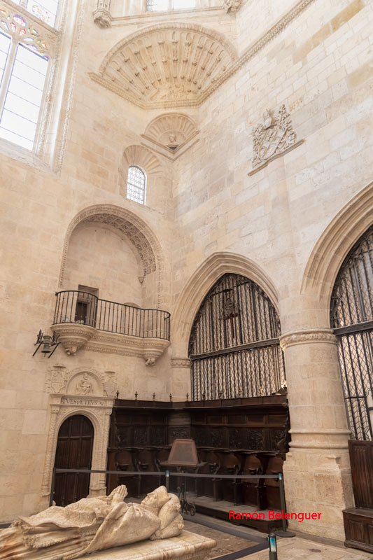 Tiene una reja renacentista de Cristóbal de Andino separa el espacio de la nave.
