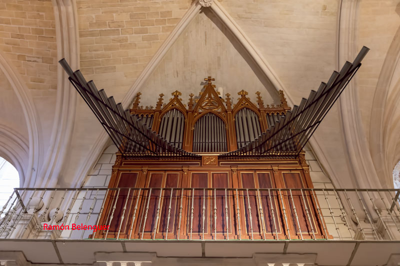 En la parte superior de los muros se abren las amplias ventanas con vidriera partida en doble ojiva y rosetón superior. Tres son los rosetones: el de la fachada de Santa María y los que presiden los testeros del transepto.