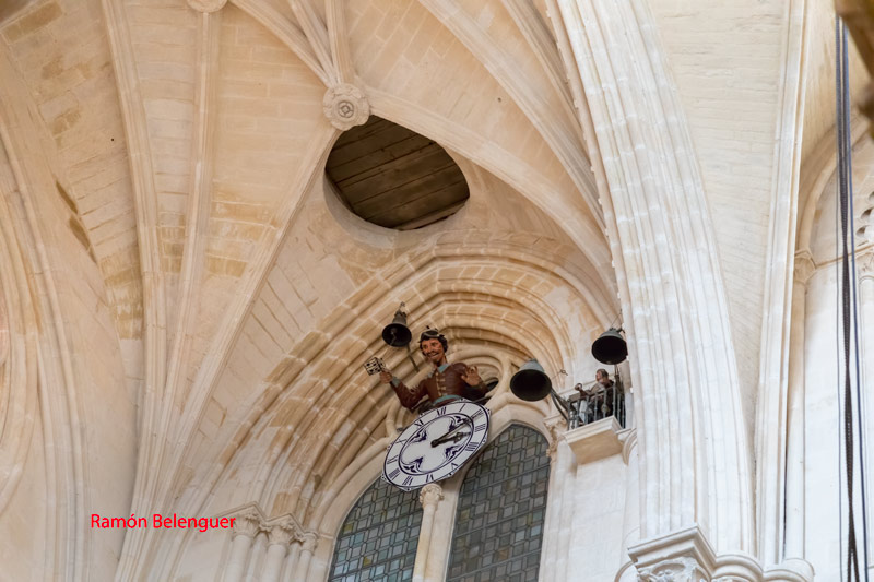A su derecha, en un balcón, otro autómata, el Martinillo, entre dos campanas, anuncia los cuartos de hora golpeando las campanas