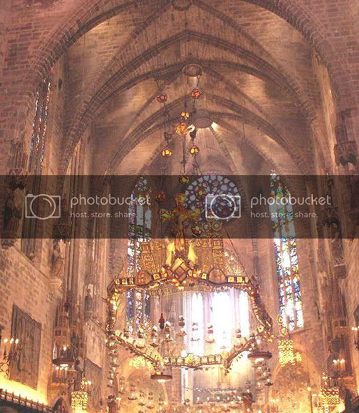 Y nos hundimos en sus raíces históricas para llega hasta 1229 cuando Jaime I realizó el culto en la mezquita aljama después de algunos cambios. Ya en el siglo XIV se construyó la nueva catedral teniendo como base la capilla de la Trinidad donde se enterró al rey, que en un principio los arquitectos propusieron como una sola nave y después cambió a tres naves con capillas entre los contrafuertes del hermoso crucero. Se elevan hasta 44 metros de altura, la nave central que se ve adornada por arbotantes sentados en sus contrafuertes y en la cabecera nos encontramos con un fenómeno arquitectónico que consiste en ver los volúmenes en diferentes escalas. Quedó consagrada finalizado 1601 por el obispo de Palma Pérez Campins y Barceló (curiosa coincidencia) que estaba más preocupado por los ritos litúrgicos. Sus contactos con Gaudí crearon unos proyectos con cambios radicales aunque alarmaron a los canónigos y al público en general porque veía los proyectos demasiados audaces. Cambios del coro, desmontar las capillas laterales y los retablos góticos y barrocos de las altares, hicieron temblar a todos. Los sarcófagos de los reyes Jaime II y III se deberían cambiar de sus puntos de origen.