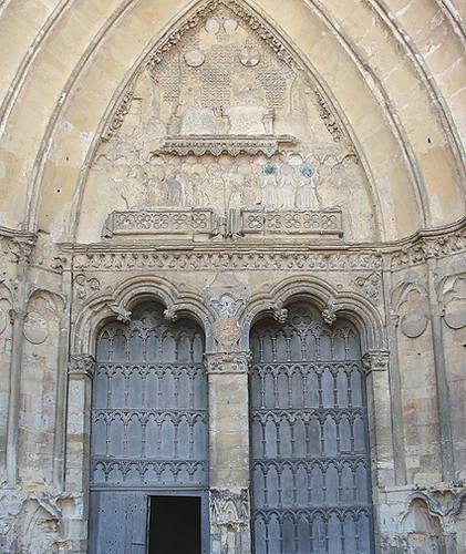 Poco a poco nos vamos acercando hacia su entrada, las figuras aún presentan ese aspecto deteriorado por el paso del tiempo, debe de ir el trabajo de reconstrucción más de prisa; la Virgen no tiene su cabeza original, se la llevaro al Louvre quizás por considerarla demasiado valiosa para estar a la interperie.El tímpano de la “Maestra Puerta” está en tal estado que es difícil de distinguir los temas que lo adornaban, poco a poco todo se andará, y sin embargo nos da cierto repelús mirar esos huecos vacíos…entramos en el túnel del tiempo…